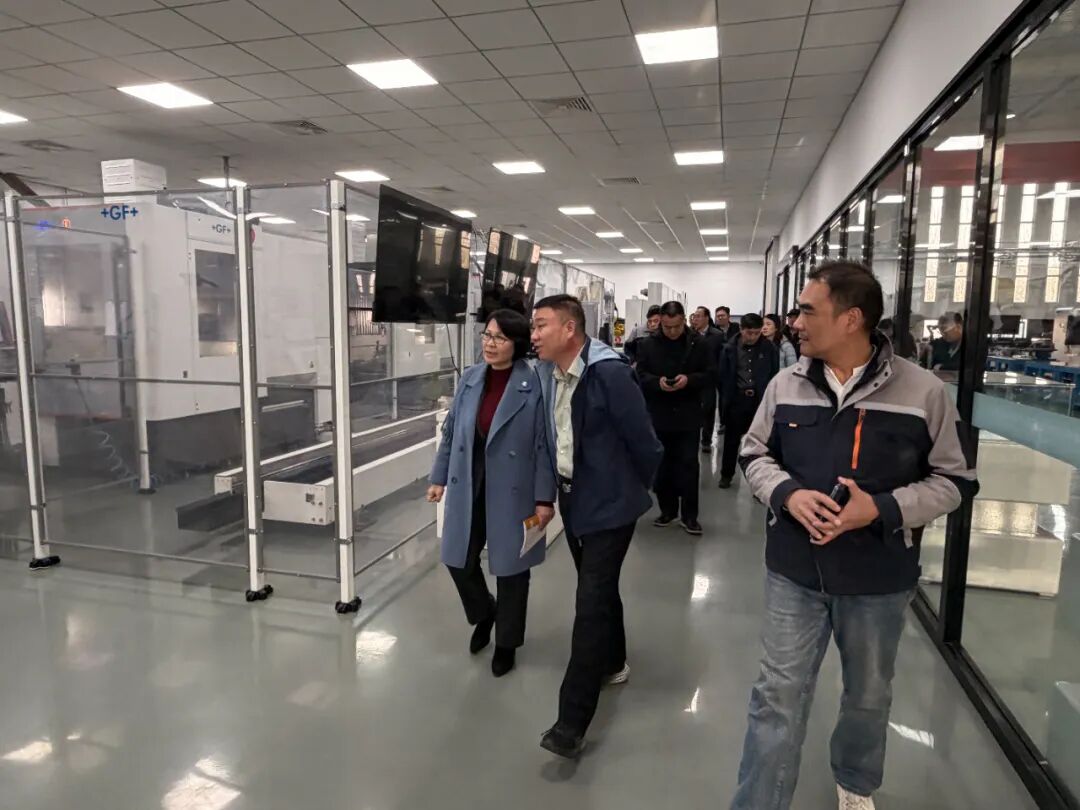 活动伊始,共建单位一行先后走进学院精密模具与智能制造产教融合基地、鲁班工坊体验馆实地考察。在产教融合基地,负责人详细介绍了专业群在深化产教融合、协同技术创新、推进职教出海等领域的实践成效,展示了学院对接产业需求、培育技术技能人才的坚实基础;在鲁班工坊体验馆,大家认真聆听建设缘起、核心内涵、发展历程及实践路径的系统讲解,聚焦其在上合组织天津峰会期间展现的中国职教为世界国际技能人才培养提供的“中国方案”给予高度评价。